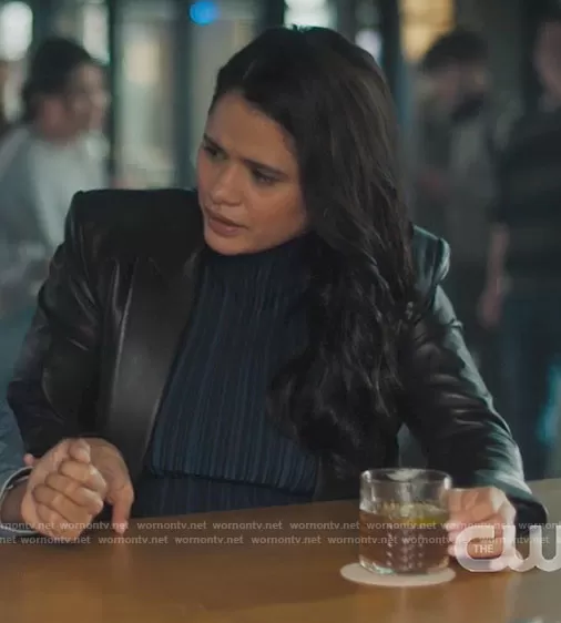 Mel Vera (played by Melonie Diaz) on Charmed on The CW was spotted wearing this blue striped top and leather blazer on Charmed on episode 'Someone's Going to Die' (3x02) in Feb 2021. Mel's Top is the Katina Top in Midnight Blue by Acne Studios . Mel's Jacket is the Tracy Leather Blazer by Mackage.