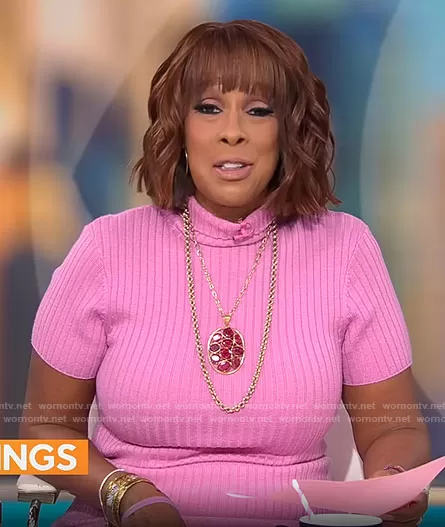 Gayle King on CBS Mornings on CBS was spotted wearing this pink sweater dress on CBS Mornings on Oct 02 2024's episode. Gayle's Dress is the Lilou Dress by Staud .