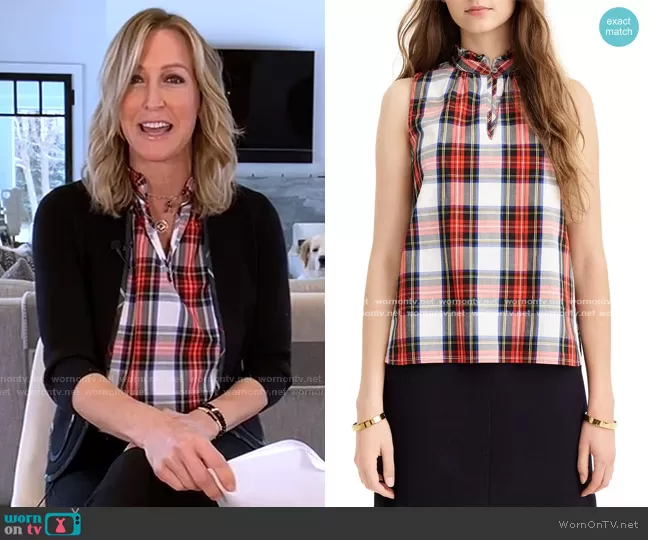 Ruffle Neck Cotton Plaid Top by J. Crew worn by Lara Spencer on Good Morning America
