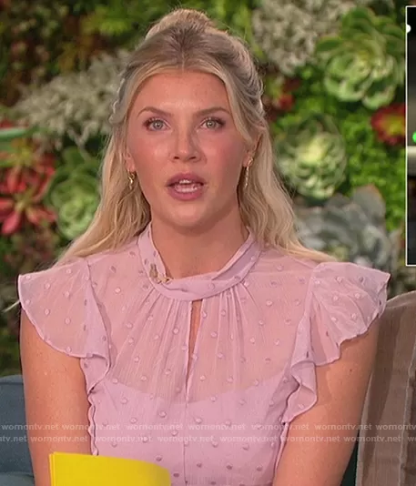 Amanda Kloots on The Talk on CBS was spotted wearing this lavenda polka dot sheer dress on The Talk on Feb 03 2021's episode. Amanda's Dress is the Dot Embroidered Dress by Rebecca Taylor.