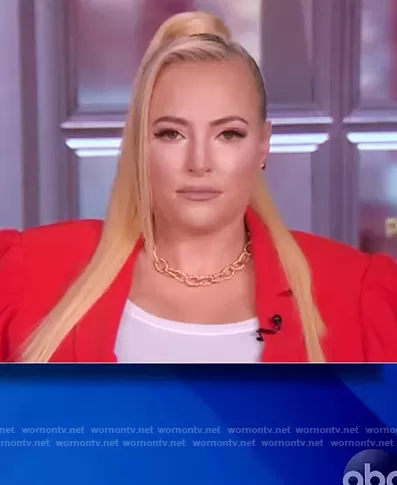 Meghan McCain on The View on ABC was spotted wearing this red puff sleeve blazer on The View on Feb 05 2021's episode. Meghan's Blazer is the Starla Puff Sleeve Blazer by Cinq a Sept.