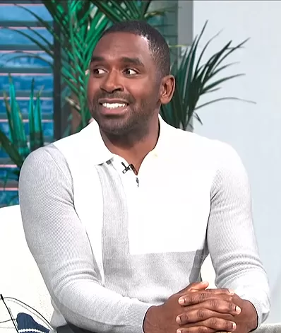 Justin Sylvester on E! News on E! was spotted wearing this colorblock quarter zip sweater on E! News Daily Pop on Feb 11 2021's episode. Justin's Shirtr is the Braydon Colorblock Half Zip Polo by Reiss.