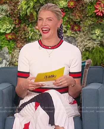 Amanda Kloots on The Talk on CBS was spotted wearing this white contrast stripe dress on The Talk on Feb 15 2021's episode. Amanda's Dress is the Fynlie Dress by Ted Baker