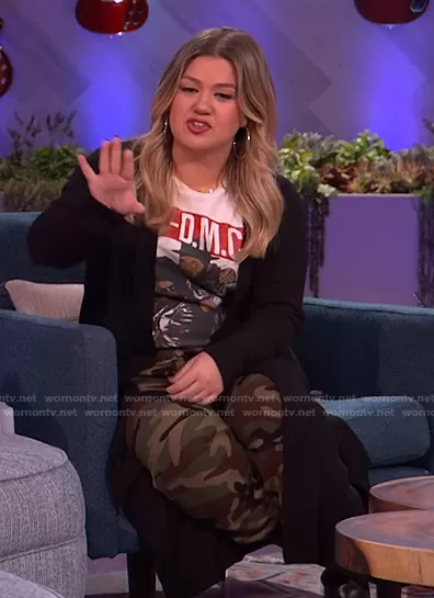 Kelly Clarkson on The Kelly Clarkson Show on NBC was spotted wearing this Run DMC print tee on The Kelly Clarkson Show on Feb 18 2021's episode. Kelly's Top is the Rum DMC Tee by Madeworn.