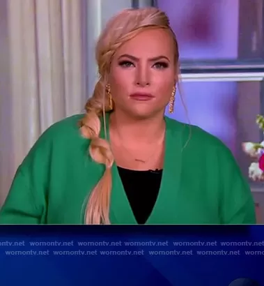 Meghan McCain on The View on ABC was spotted wearing this green knit cardigan on The View on Feb 22 2021's episode. Meghan's Sweater is the Louie Oversized Cardigan by Alice + Olivia.