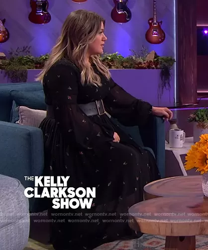 Kelly Clarkson on The Kelly Clarkson Show on NBC was spotted wearing this black floral sheer dress on The Kelly Clarkson Show on Feb 22 2021's episode. Kelly's Dress is the Printed Georgette Dress by Ganni.