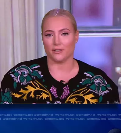 Meghan McCain on The View on ABC was spotted wearing this black floral print sweatshirt on The View on Feb 23 2021's episode. Meghan's Sweater is the Turner Pullover Sweater by Munthe.