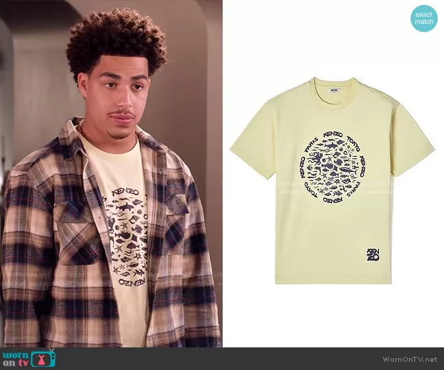 Andre Johnson Jr (played by Marcus Scribner) on Black-ish on ABC was spotted wearing this yellow sea creatures print tee on Black-ish on episode 'The Mother and Child De-Union' (7x13) in Feb 2021. Junior's Shirt is the Sea Creatures Skate Graphic Tee by Kenzo.