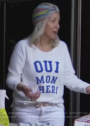 Margaret Josephs on The Real Housewives of New Jersey on Bravo was spotted wearing this Oui Mon Cheri sweatshirt on The Real Housewives of New Jersey on episode 'Licked Up and Down' (11x02) in Feb 2021. Margaret's Sweater is the Oui Mon Cheri Sweatshirt by J. Crew.