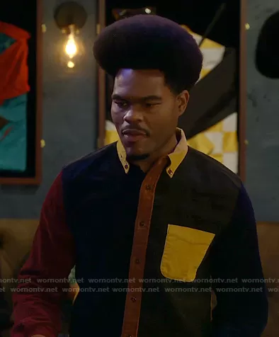 Carter (played by Julian Gant) on Call Me Kat on Fox was spotted wearing this colorblock corduroy button down shirt on Call Me Kat on episode 'First Date' (1x09) in Feb 2021. Carter's Shirt is the Button-Down Collar Colour-Block Cotton-Corduroy Shirt by Beams Plus.