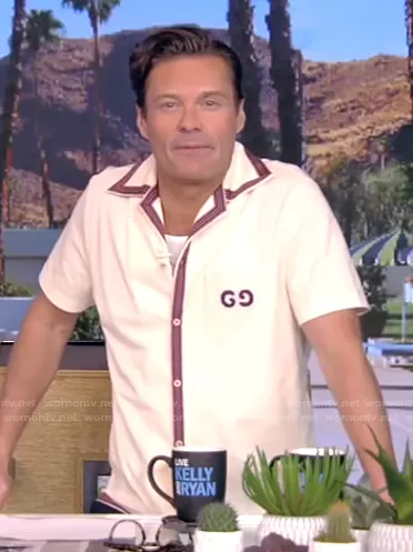 GG Embroidery Bowling Shirt by Gucci worn by Ryan Seacrest on Live with Kelly and Ryan