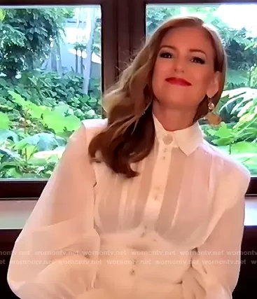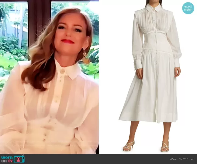 on The Drew Barrymore Show on CBS was spotted wearing this white corset dress on The Drew Barrymore Show on Mar 01 2021's episode. 's Dress is the Utopia Long-Sleeve Midi Dress by Aje.
