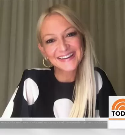 on Today on NBC was spotted wearing this polka dot blouse on Today on Mar 01 2021's episode. 's Top is the Cape-Effect Polka-Dot Silk-Georgette Blouse by Valentino.