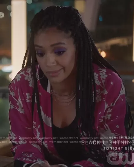 Olivia Baker (played by Samantha Logan) on All American on CWTV was spotted wearing this pink floral bomber jacket on All American on episode 'Roll the Dice' (3x07) in Mar 2021. Olivia's Jacket is the Floral Bomber Jacket by N.21.