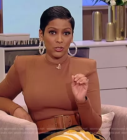 Tamron Hall on Tamron Hall Show on ABC was spotted wearing this stripe midi skirt on Tamron Hall Show on Mar 02 2021's episode. Tamron's Skirt is the Pleated striped wool skirt by Marni.