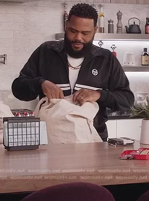 Andre Johnson (played by Anthony Anderson) on Black-ish on ABC was spotted wearing this black track jacket on Black-ish on episode 'High Water Mark' (7x12) in Mar 2021. Andre's Jacket is the Dallas Track Jacket by Sergio Tacchnini.