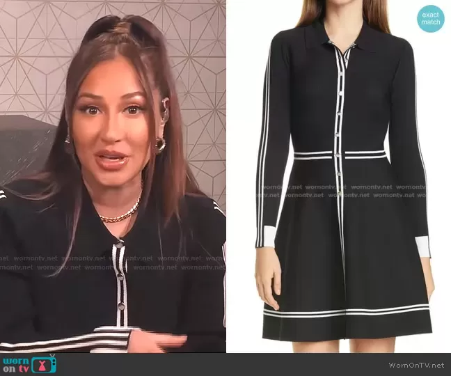 Adrienne Houghton on The Real on BETher was spotted wearing this black contrast stripe dress on The Real on Mar 02 2021's episode. Adrienne's Dress is the Sofiyya Dress by Ted Baker.