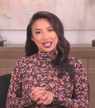 Jeannie Mai on The Real on BETher was spotted wearing this floral mock neck dress on The Real on Mar 03 2021's episode. Jeannie's Dress is the Heidi Printed Bodycon Dress by Ramy Brook.