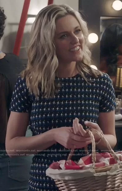 Tami (played by Taylor Louderman) on Kenan on NBC was spotted wearing this blue houndstooth sheath dress on Kenan on episode 'The Fourth Hour' (1x03) in Mar 2021. Tami's Dress is the Houndstooth Fitted Dress by Victoria Beckham.