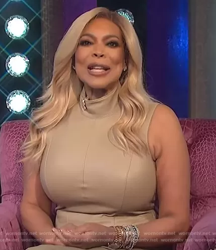 Wendy Williams on The Wendy Williams Show on Various was spotted wearing this beige sleeveless leather dress on The Wendy Williams Show on Mar 03 2021's episode. Wendy's Dress is the Farrah Vegan Leather Dress by Alexis.