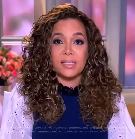 Sunny Hostin on The View on ABC was spotted wearing this mixed media sweater on The View on Mar 03 2021's episode. Sunny's Sweater is the Roy Mix Media Sweater by Veronica Beard.