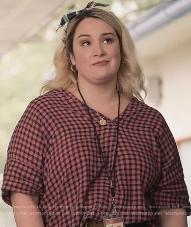 Davia (played by Emma Hunton) on Good Trouble on Freeform was spotted wearing this pink gingham check top on Good Trouble on episode 'Whoosh, Pow, Bang' (3x03) in Mar 2021. Davia's Top is the Courier Button Back Shirt by Madewell.