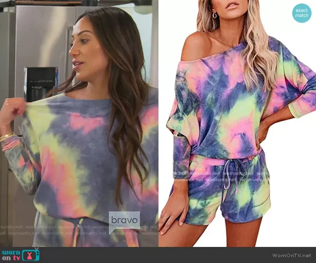 Melissa Gorga on The Real Housewives of New Jersey on Bravo was spotted wearing this tie dye pajama set on The Real Housewives of New Jersey on episode 'Guys Gone Wild' (11x03) in Mar 2021. Melissa's Pajamas is the Short Pajamas Set by Ezbelle.