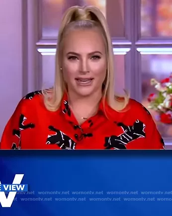 Meghan McCain on The View on ABC was spotted wearing this red panther print blouse on The View on Mar 08 2021's episode. Meghan's Top is the Leanna Blouse by Diane von Furstenberg.