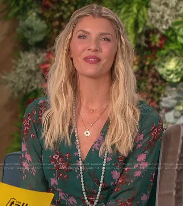 Amanda Kloots on The Talk on CBS was spotted wearing this green floral wrap dress on The Talk on Mar 10 2021's episode. Amanda's Dress is the Palazzo Print Long Sleeve Silk Wrap Dress by Paige.