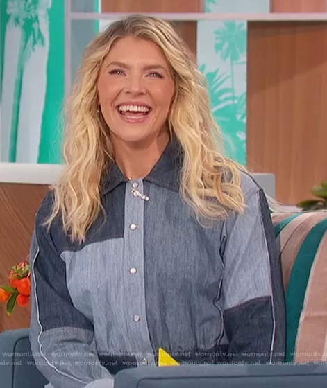 Amanda Kloots on The Talk on CBS was spotted wearing this patchwork denim dress on The Talk on Mar 12 2021's episode. Amanda's Dress is the Patchwork denim mini shirt dress by dolce and gabbana . Amanda's Shoes is the Alysha Boots by Schutz.