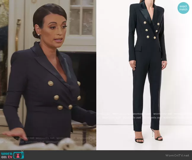 on The Real Housewives of New Jersey on Bravo was spotted wearing this double breasted blazer jumpsuit on The Real Housewives of New Jersey on episode 'Redo and Rewind' (11x04) in Mar 2021. 's Jumpsuit is the Double-breasted Stretch Jumpsuit by Balmain.