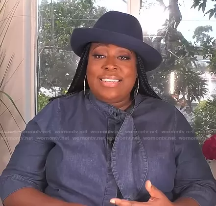 Loni Love on The Real on BETher was spotted wearing this tie neck denim dress on The Real on Mar 15 2021's episode. Loni's Dress is the Tie Neck Denim Dress by Eloquii.