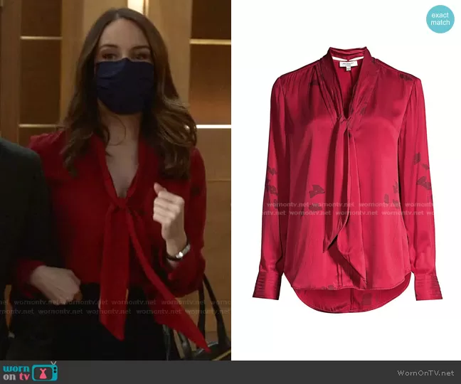 Isabella Colón (played by Yara Martinez) on Bull on CBS was spotted wearing this red floral tie neck blouse on Bull on episode 'The Boy Who Cried Murder' (5x10) in Mar 2021. Izzy's Top is the Fayanna Silk Neck-Tie Blouse by Equipment.