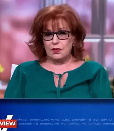 Joy Behar on The View on ABC was spotted wearing this green keyhole tie neck blouse on The View on Mar 16 2021's episode. Joy's Top is the Izabel Blouse by Lafayette 148 New York.