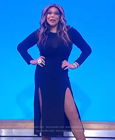 Wendy Williams on The Wendy Williams Show on Various was spotted wearing this black dress with side slits on The Wendy Williams Show on Mar 17 2021's episode. Wendy's Dress is the Hosiery Shadow Dress by Dion Lee.
