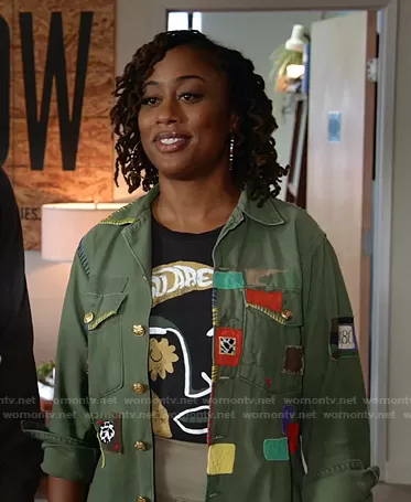 Simon Patchwork Cargo Jacket by Riley worn by Malika Williams (Zuri Adele) on Good Trouble