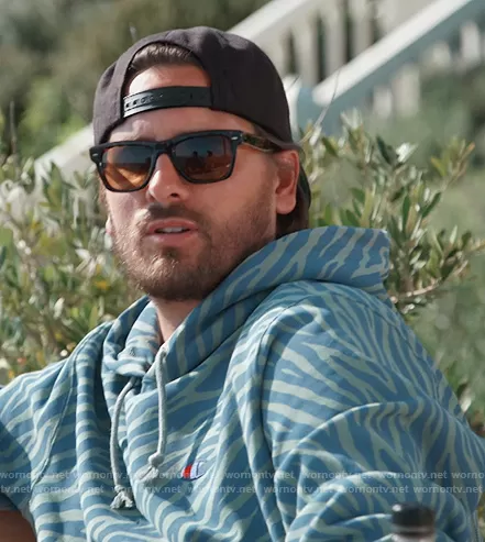 on Keeping Up with the Kardashians on E! was spotted wearing this blue tiger print hoodie on Keeping Up with the Kardashians on episode 'Beginnings and Endings' (20x01) in Mar 2021. 's Sweater is the Tiger Hooded Sweatshirt by Champion at Urban Outfitters.