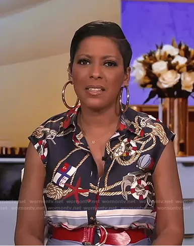 Tamron Hall on Tamron Hall Show on ABC was spotted wearing this blue printed belted dress on Tamron Hall Show on Mar 19 2021's episode. Tamron's Dress is the Printed Dress with Belt by Zara.