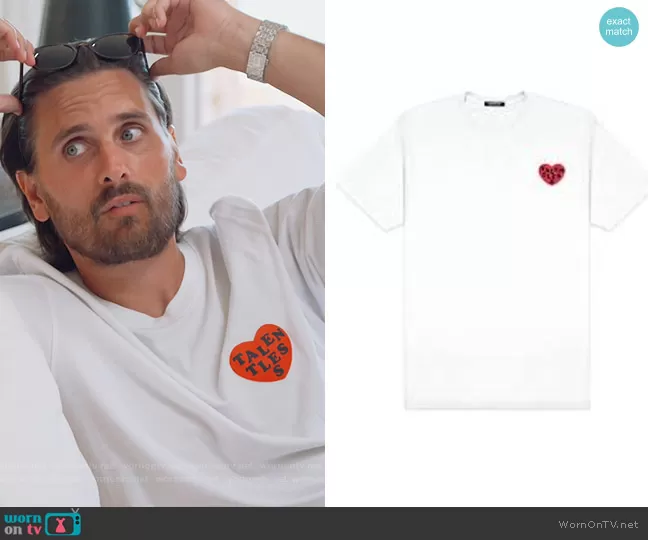 on Keeping Up with the Kardashians on E! was spotted wearing this white talentless heart tee on Keeping Up with the Kardashians on episode 'Beginnings and Endings' (20x01) in Mar 2021. 's Shirt is the Show me the Love Tee by Talentless.