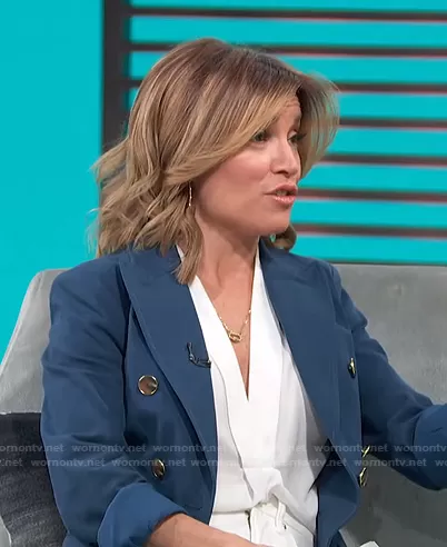 Kit Hoover on Access Hollywood on NBC was spotted wearing this blue double breasted blazer on Access Hollywood on Mar 22 2021's episode. Kit's Jacket is the Eliza Double Breasted Blazer by Derek Lam 10 Crosby.