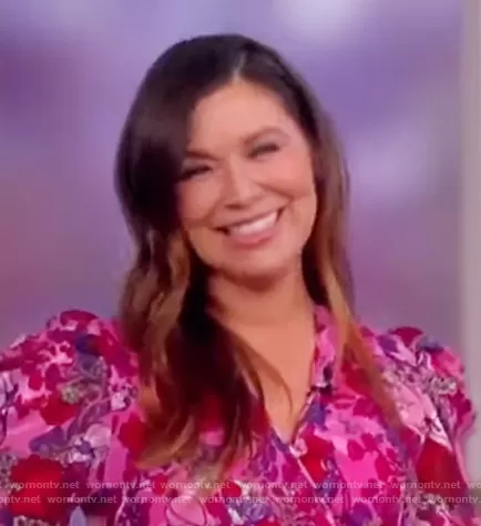 on The View on ABC was spotted wearing this pink floral wrap dress on The View on Mar 22 2021's episode. 's Dress is the Sasha Floral Puff-Sleeve A-Line Wrap Dress by Tanya Taylor.