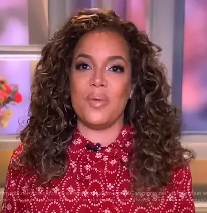 Sunny Hostin on The View on ABC was spotted wearing this red printed tie neck blouse on The View on Mar 24 2021's episode. Sunny's Top is the Tie-detailed printed silk blouse by Chloe.