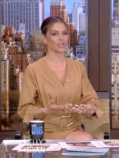 on Live with Kelly and Mark on Disney ABC Home Entertainment was spotted wearing this beige belted poplin mini dress on Live with Kelly and Ryan on Mar 24 2021's episode. 's Dress is the Bastor Poplin Mini Dress by Acler.
