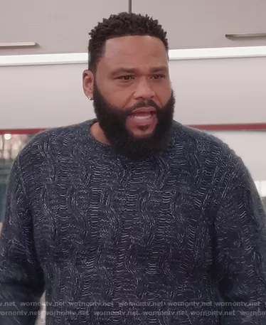 Andre Johnson (played by Anthony Anderson) on Black-ish on ABC was spotted wearing this blue knit sweater on Black-ish on episode 'The Mother and Child De-Union' (7x13) in Mar 2021. Andre's Sweater is the Navy Lilac Sweater by Acne Studios.