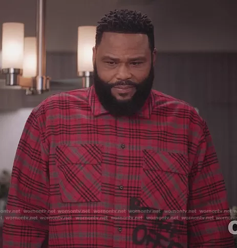 Andre Johnson (played by Anthony Anderson) on Black-ish on ABC was spotted wearing this red plaid shirt on Black-ish on episode 'The Mother and Child De-Union' (7x13) in Mar 2021. Andre's Top is the Red & Black Flannel Check Shirt by Off-White.