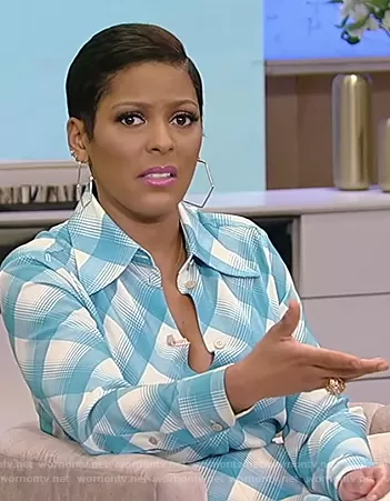Tamron Hall on Tamron Hall Show on ABC was spotted wearing this blue plaid blouse and skirt on Tamron Hall Show on Mar 25 2021's episode. Tamron's Top is the Blue Optical Tartan Skirt by Gucci . Tamron's Skirt is the Blue Tartan Skirt by Gucci.