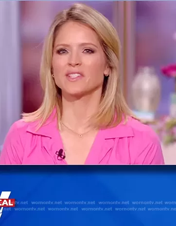 Sara Haines on The View on ABC was spotted wearing this pink shirtdress on The View on Mar 29 2021's episode. Sara's Dress is the Millie Maxi Dress by Staud.