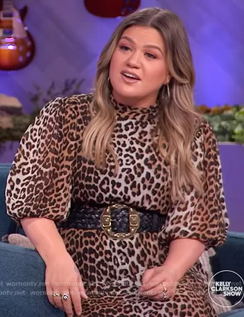 Kelly Clarkson on The Kelly Clarkson Show on NBC was spotted wearing this leopard print mini dress on The Kelly Clarkson Show on Mar 30 2021's episode. Kelly's Dress is the Leopard Print Puff Sleeve Georgette Minidress by Ganni.