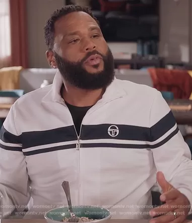 Andre Johnson (played by Anthony Anderson) on Black-ish on ABC was spotted wearing this white stripe jacket on Black-ish on episode '100 Yards and Runnin' (7x14) in Mar 2021. Andre's Jacket is the Tennis Young Line Track Jacket by Sergio Tacchini.