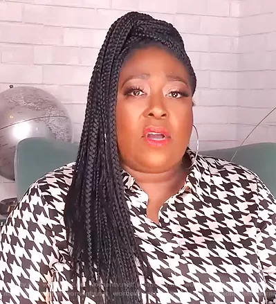 Loni Love on The Real on BETher was spotted wearing this houndstooth print blouse on The Real on Apr 02 2021's episode. Loni's Top is the Tie Neck Blouse by Eloquii.